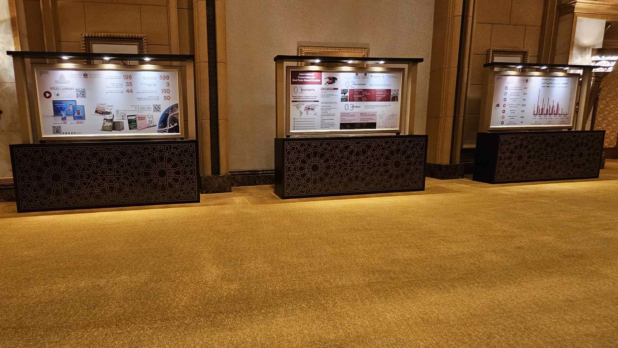 Tarweej coordinated production and installation across the main stage and surrounding display areas to maintain consistency in finish, branding, and technical presentation. Meanwhile, the built environment suggests close control over fabrication details, lighting integration, and venue-ready execution.