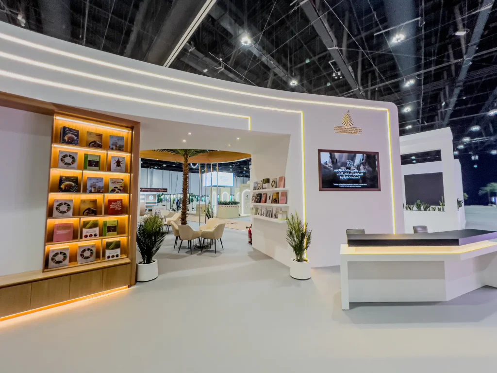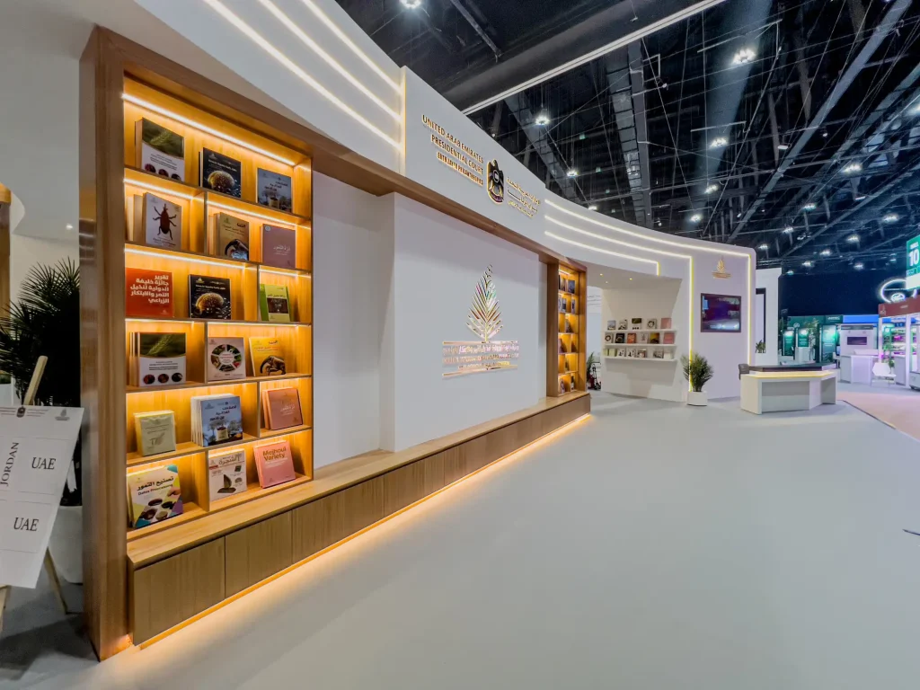 The final stand presented the Khalifa International Date Palm Award as credible, elevated, and well organized. It created a strong physical platform for engagement, knowledge display, and hospitality, while demonstrating our ability to deliver immersive exhibition environments with technical clarity and refined execution.