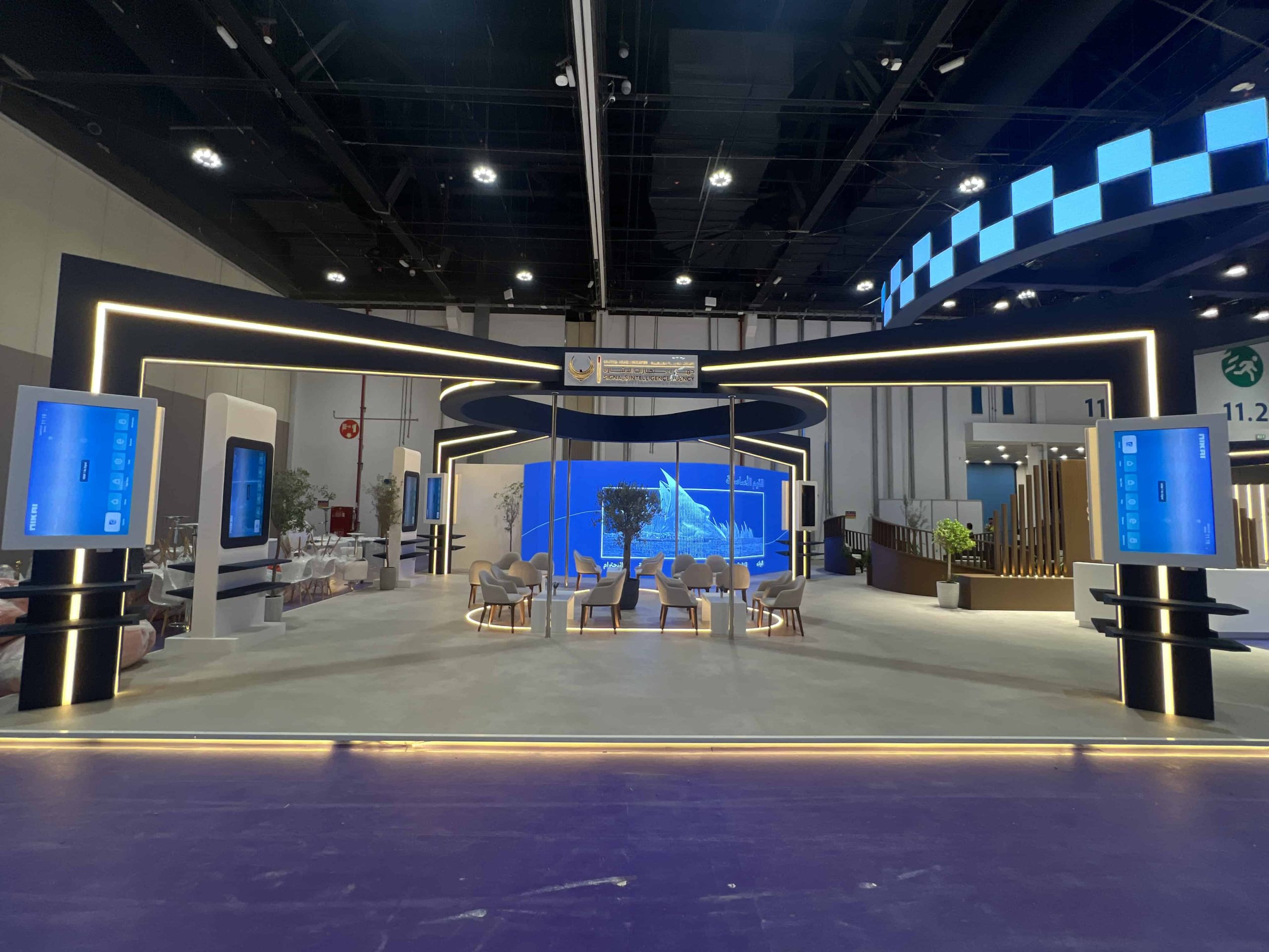 The Signals Intelligence Agency exhibition stand at Tawdheef x Zaheb 2024 was developed to create a strong, well-organized presence at ADNEC, Abu Dhabi. Tarweej delivered the stand as a complete exhibition solution, combining design, engineering, fabrication, and installation within one coordinated process.
